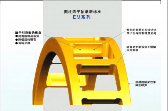 skf原先提供的以下兩種單列skf圓柱滾子軸承的標(biāo)準(zhǔn)保持架,標(biāo)準(zhǔn)車削保持架型套圈引導(dǎo)型分離式銅合金保持架)高負(fù)荷容量E型(套圈引導(dǎo)型-體式銅合金保持架)。現(xiàn)在,skf開發(fā)了21世紀(jì)的銅合金一體式保持架的圓柱滾子軸承。EM系列軸承兼具以上兩種軸承的優(yōu)點(diǎn),并進(jìn)一步提高了性能。skf基于新的設(shè)計(jì)理念而開發(fā)的全新構(gòu)造軸承。無論在性能還是壽命上,都具有較強(qiáng)的特性,是新時(shí)代的高負(fù)荷容量圓柱滾子軸承。